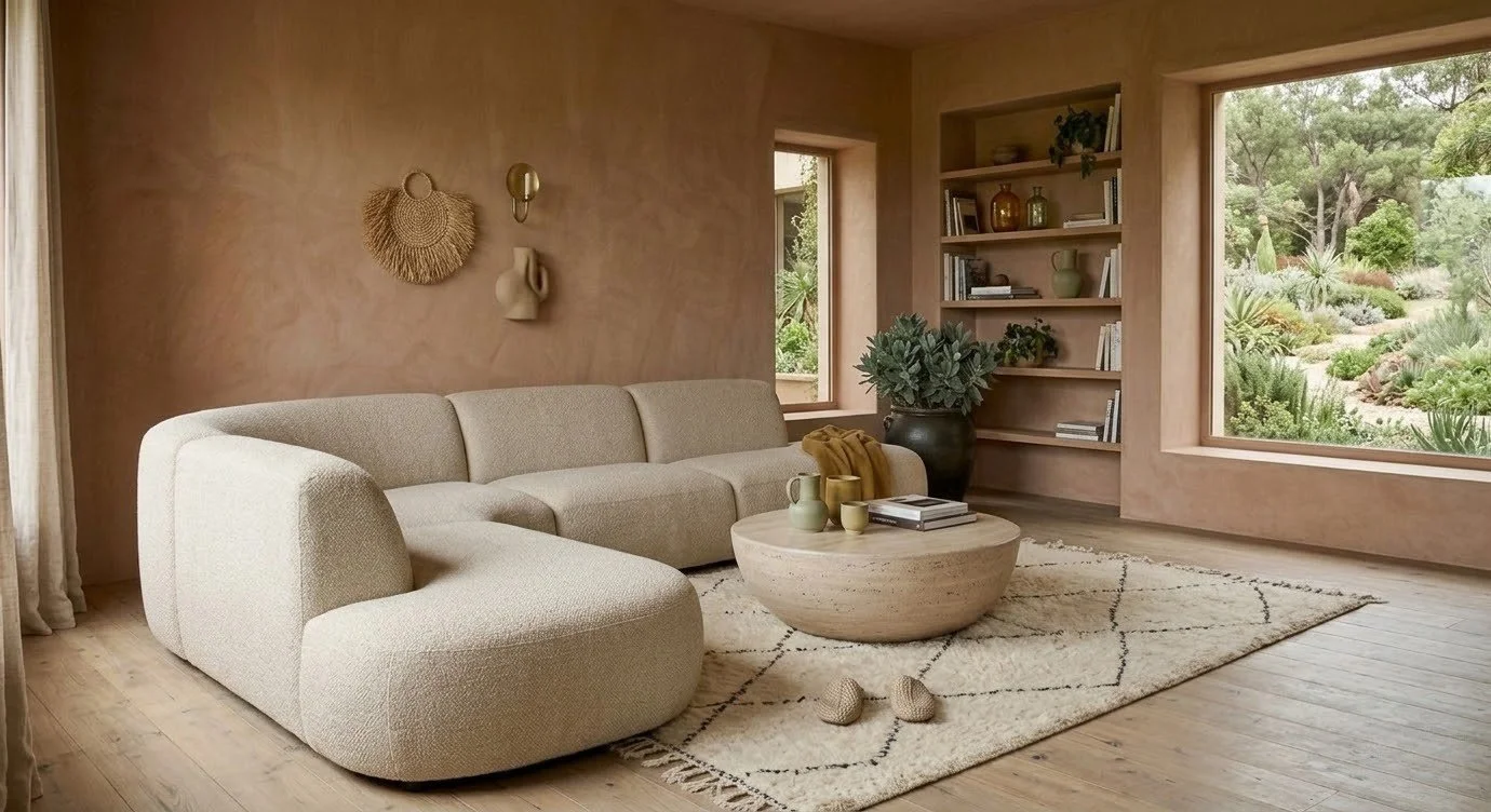 Sensory Restoration: This colour strategy is a deliberate attempt to create an atmosphere of "emotional enclosure" — a restorative calm that mirrors the way morning light diffuses across a textured, warm-hued wall.